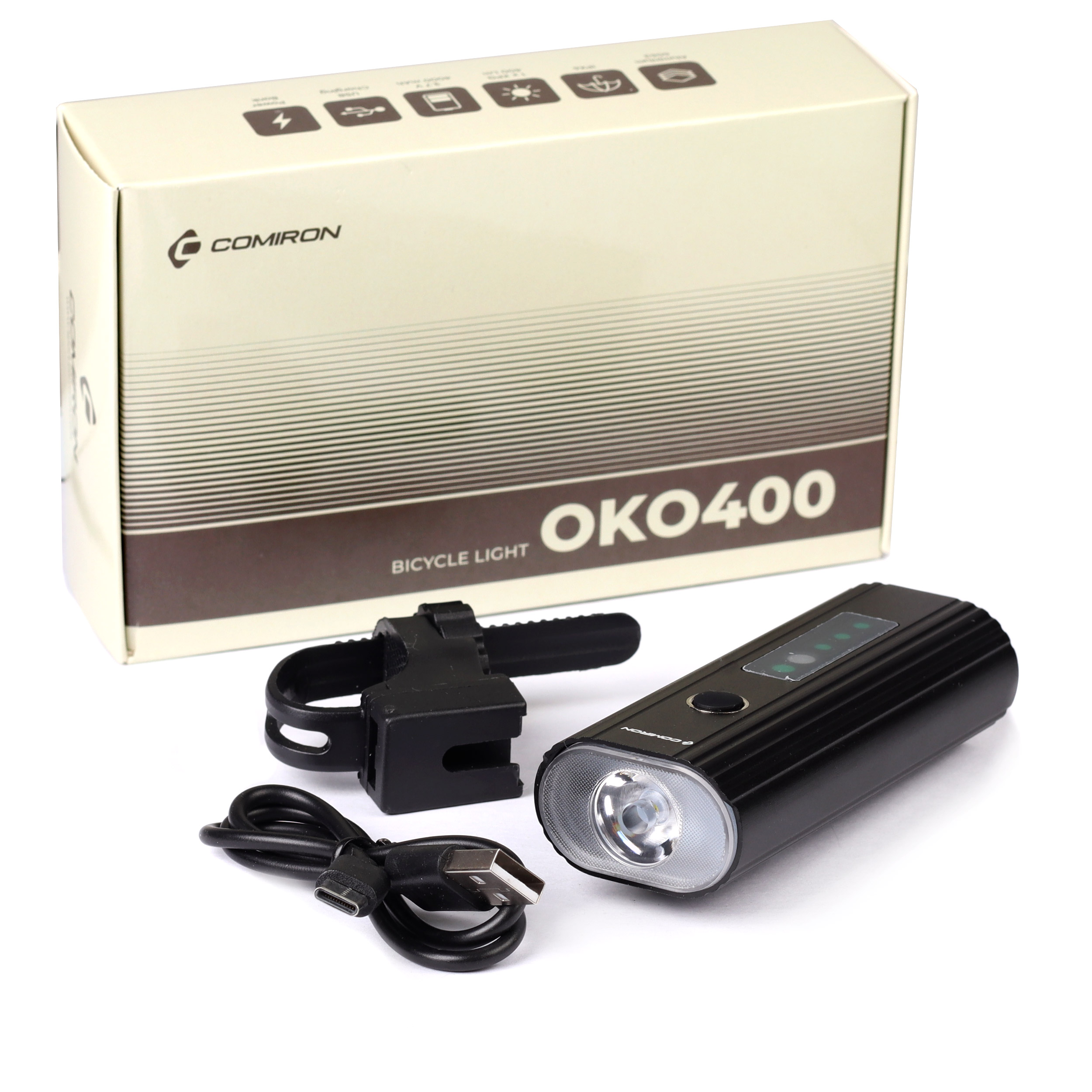 —Фонарь передний Comiron "OKO400", авиационный алюминий 6063, свет: 1 XPG, 650lm