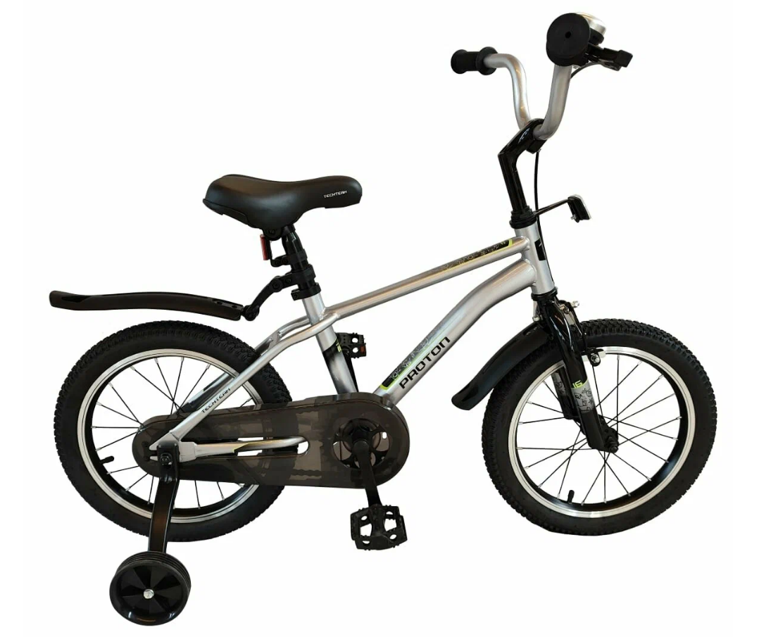 Велосипед TechTeam Proton 14"  - отличная бюджетная детская модель в хорошей комплектации. Велосипед собран на стальной раме с геометрией удобной для ребенка. Грипсы (рукоятки) руля выполнены из мягкой резины с ограничителями для предотвращения соскальзывания рук во время движения. Из дополнительного оборудования на руле закреплены светоотражающий элемент и звонок.