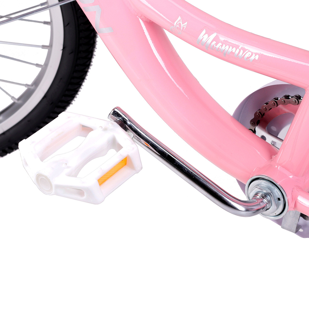 По своей логике Moonriver 20 — это велосипед для двора, парка, велодорожек и первых самостоятельных маршрутов рядом с родителями. У него одна скорость, ножной задний тормоз и ручной передний V-brake, а это очень типичная и при этом удобная схема для детского сегмента. Ребёнку не нужно разбираться в передачах, зато он сразу получает понятное торможение и возможность привыкать к велосипеду без лишнего стресса. В открытых карточках указывают алюминиевые усиленные обода, покрышки 20×2.125 и вес около 10,7 кг, что для детской модели такого формата выглядит вполне адекватно и без лишней тяжести.