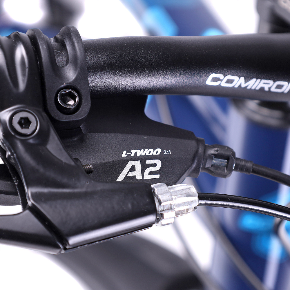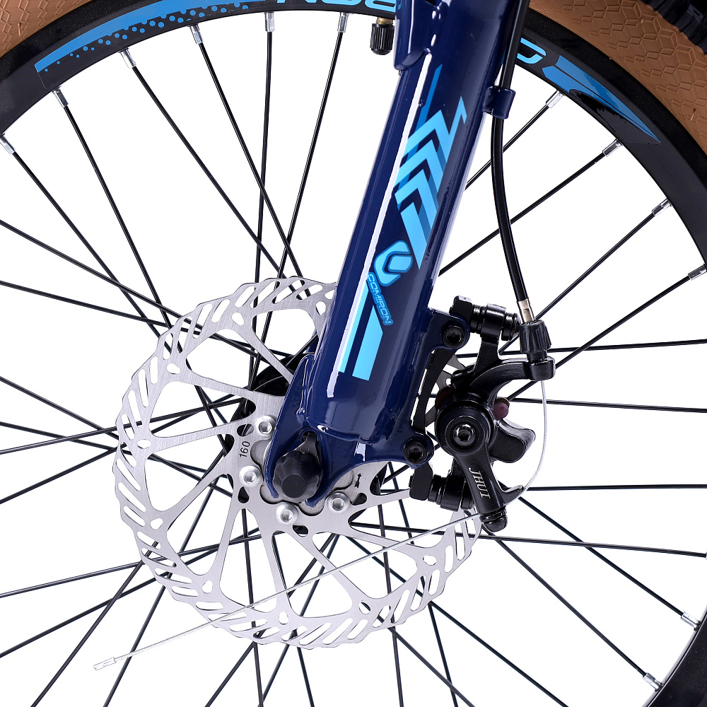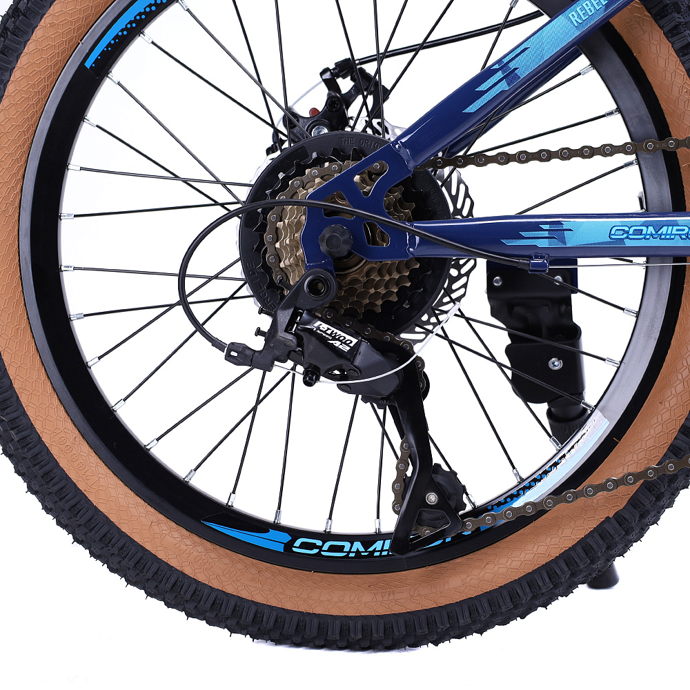 По трансмиссии Rebel 20 тоже собран удачно: L-TWOO A2, 1×7. Для ребёнка это очень правильная логика. Спереди одна звезда, сзади семь передач — значит, можно уже учиться менять темп, легче ехать в подъём и не крутить «в пустоту» на прямой, но при этом не путаться в сложной двухманеточной системе. Отдельно полезно, что тормоза здесь дисковые механические: для активного ребёнка это реально комфортнее и спокойнее, чем ободные тормоза, особенно если кататься не только в идеальную сухую погоду.