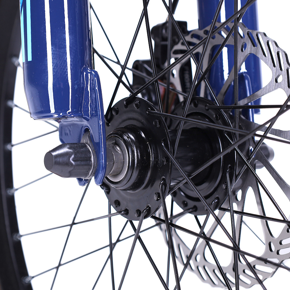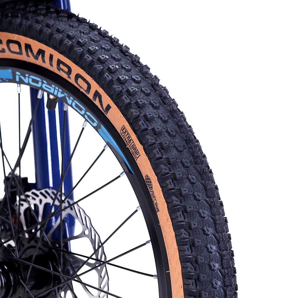 Главная сильная сторона Rebel 20 — в том, что он не ограничивается только внешним видом. Да, «супергеройский» дизайн — часть его подачи, но по железу модель тоже собрана вполне достойно для этой ниши. У него амортизационная вилка, которая добавляет комфорта на дворовых неровностях, парковых дорожках и плохом асфальте, а также двойные алюминиевые обода и втулки на промподшипниках. В открытой карточке отдельно отмечается и широкая фирменная резина 2,35" с выраженным протектором, которая хорошо чувствует себя не только на асфальте, но и на грунте. Для велосипеда такого размера это уже заметный плюс: ребёнок получает не только красивую модель, но и более уверенное поведение на разных покрытиях.