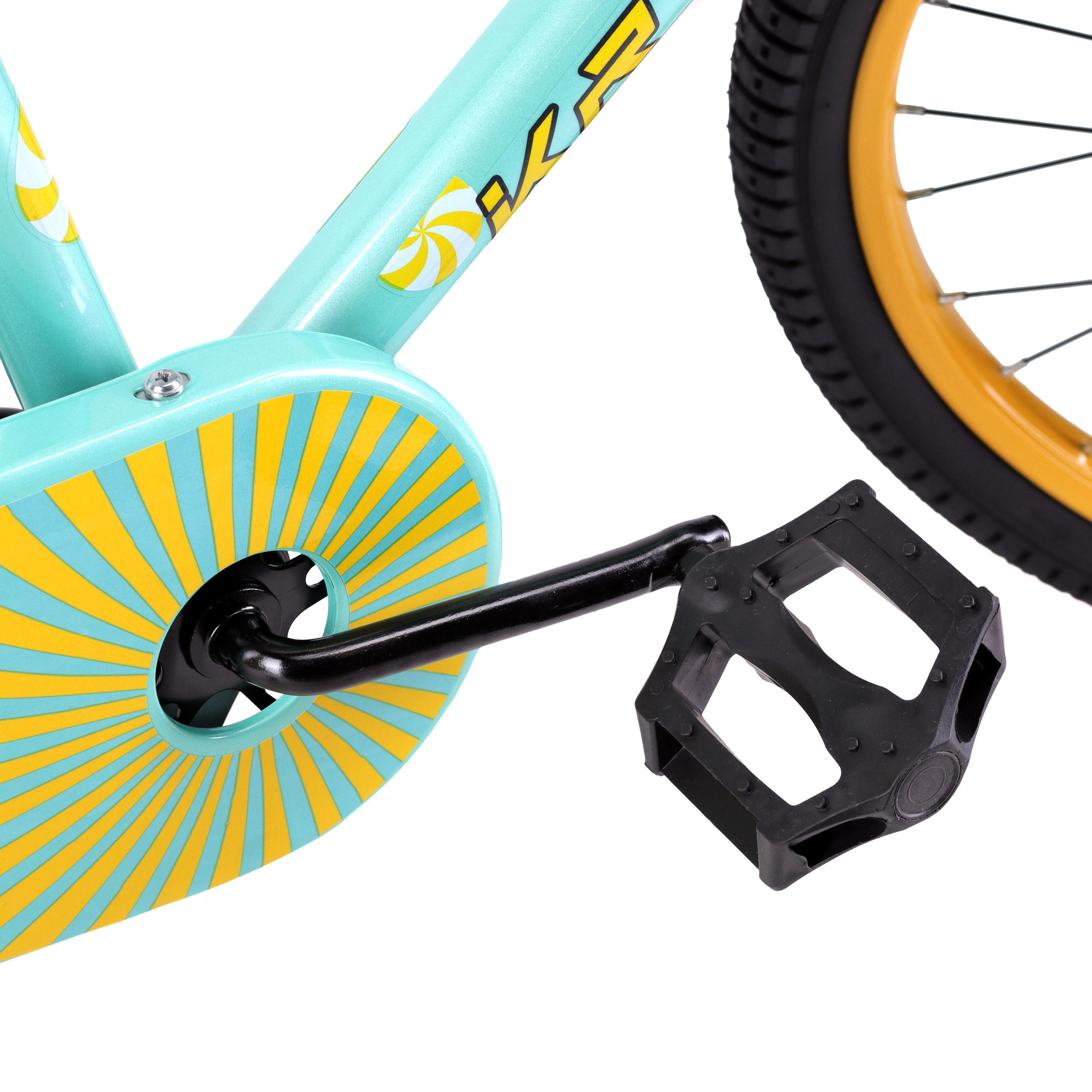 Krypton Candy Sky 20" — это детский велосипед, который сразу честно заявляет свою роль: яркая, удобная и максимально дружелюбная модель для первых уверенных поездок. В официальной карточке Candy Sky прямо описывается как велосипед с приставными колёсами и корзинкой для детей ростом примерно 110–125 см, а возрастная вилка указана как 6–11 лет. В велосипеде акцент сделан на простоте, надёжности конструкции, удобном седле и руле, а также на том, что модель создана именно для обучения и спокойного катания. То есть это не «маленький горный велосипед», а классический детский формат, где всё подчинено одному: чтобы ребёнку было легко, понятно и безопасно.