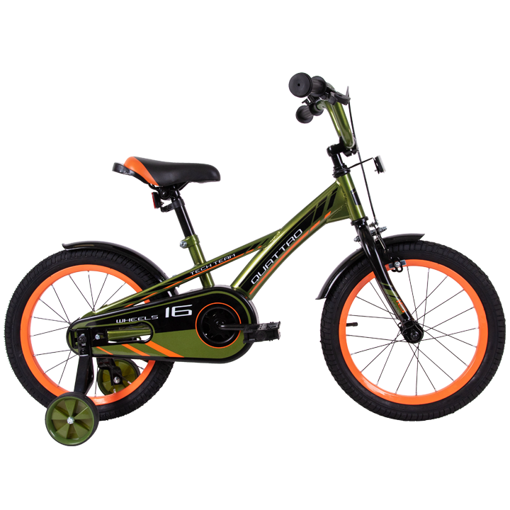 TechTeam Quattro 18 - отличная бюджетная детская модель в хорошей комплектации, подходящая на рост ребенка 105 — 130 см — возраст 6-8 лет. Велосипед собран на стальной раме с геометрией удобной для ребенка. Грипсы (рукоятки) руля выполнены из мягкой резины с ограничителями для предотвращения соскальзывания рук во время движения. Из дополнительного оборудования на руле закреплены светоотражающий элемент и звонок.