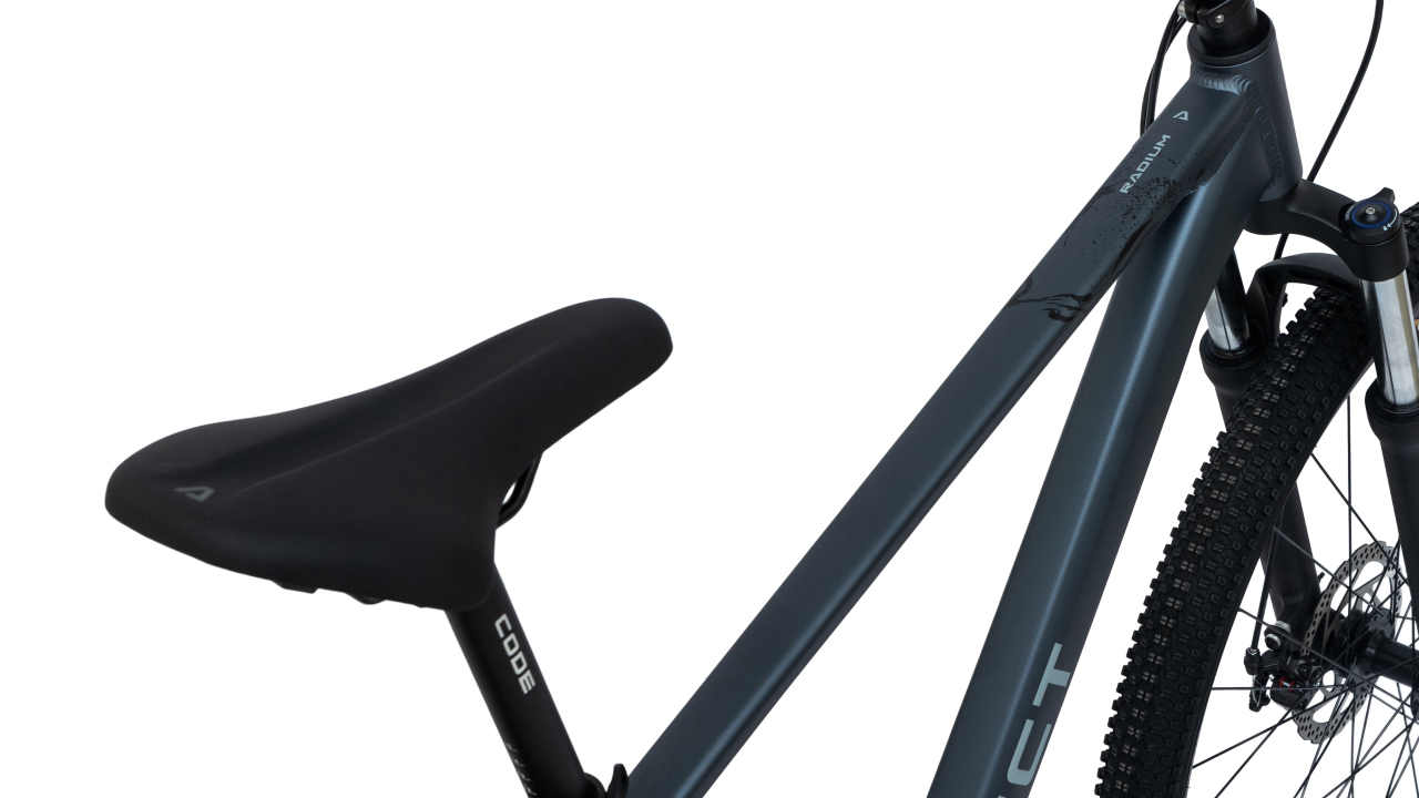 Сам характер Radium 29 хорошо раскрывается именно через сочетание геометрии и больших колёс. 29" здесь дают модели хороший перекат через мелкие неровности, более спокойное поведение на плохом асфальте и уверенный накат на длинной прямой. Спереди стоит пружинно-эластомерная вилка GTMRK с ходом 100 мм, 30-мм ногами и блокировкой. Для велосипеда такого назначения это правильный уровень: передняя подвеска добавляет комфорта на плитке, бордюрах и лесной дорожке, но не заставляет мириться с избыточной раскачкой на ровном асфальте. Отдельно приятно, что модель уже из коробки собрана на промышленных подшипниках, и это одна из его сильных сторон. В реальной езде это как раз те детали, которые ощущаются не “в лоб”, а в целом: велосипед едет чище, спокойнее и производит впечатление более цельной конструкции.