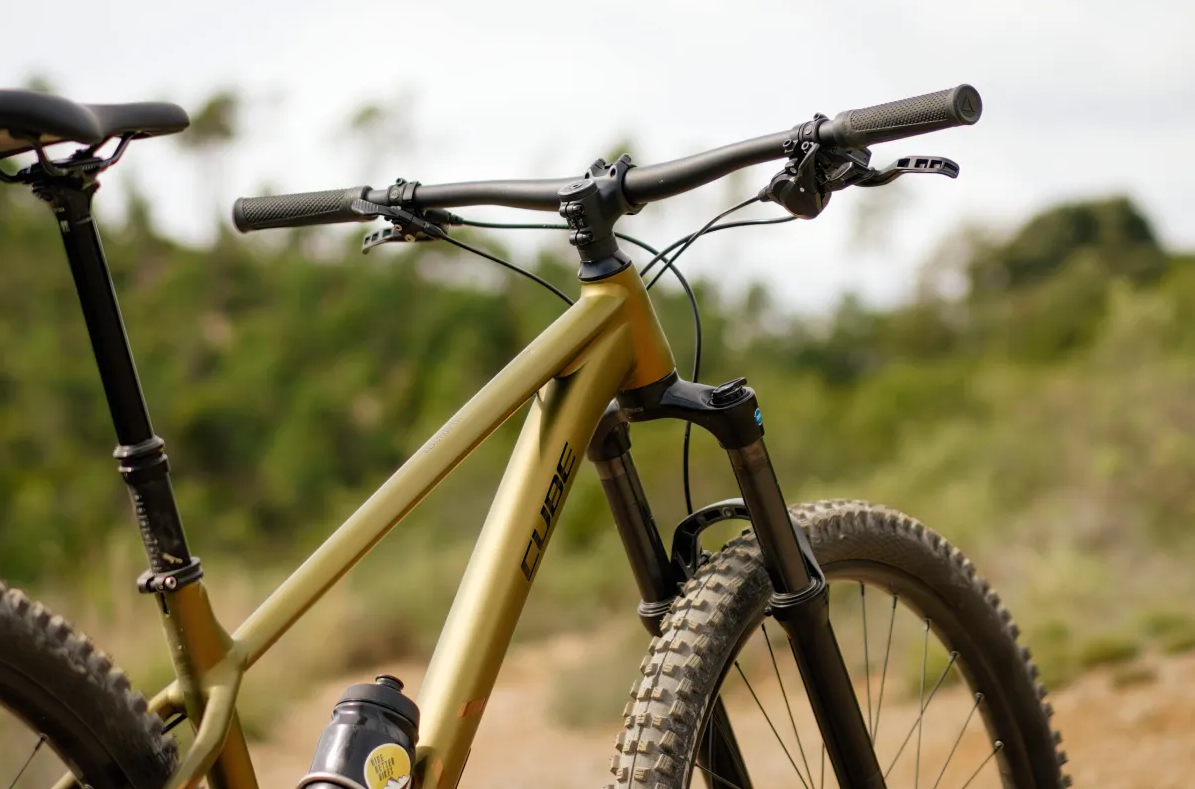 Самое главное в этой модели — геометрия и передняя подвеска. Здесь стоит воздушная SR Suntour XCR34 2CR Air с ходом 140 мм, осью 15×110. Это уже не вилка «для галочки»: такой перед действительно позволяет ехать по корням, камням и ломаным трейлам заметно увереннее, чем обычные 100-мм XC-вилки. Плюс здесь уже в базе установлен дроппер-подседел, а это для трейлового хардтейла не просто приятная опция, а важная часть контроля на спусках и в техничных местах. Велосипед создан не для асфальта и не для прогулочного леса, а для того, чтобы хардтейл ощущался азартным и современным.