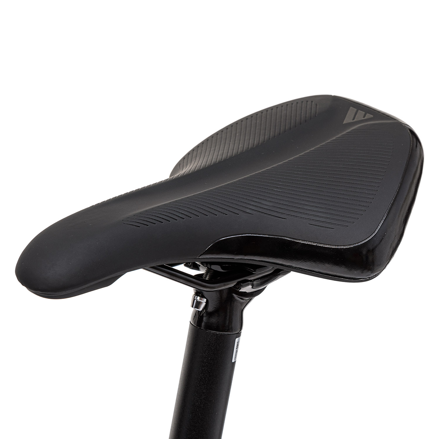 Рама лёгкая, с конической рулевой, плюс внутренняя проводка — внешний вид прям современный. Вилка пружинно-масляная, работает плавно, эффективно обрабатывает мелкие и средние препятствия в отличие от обычных вилок, ход 110 мм — это комфорт и универсальность. Обода с технологией бескамерной установки Tubeless Ready, втулки на промподшипниках, руль широкий 720 мм — велосипед ощущается «взрослым» по посадке и контролю.
