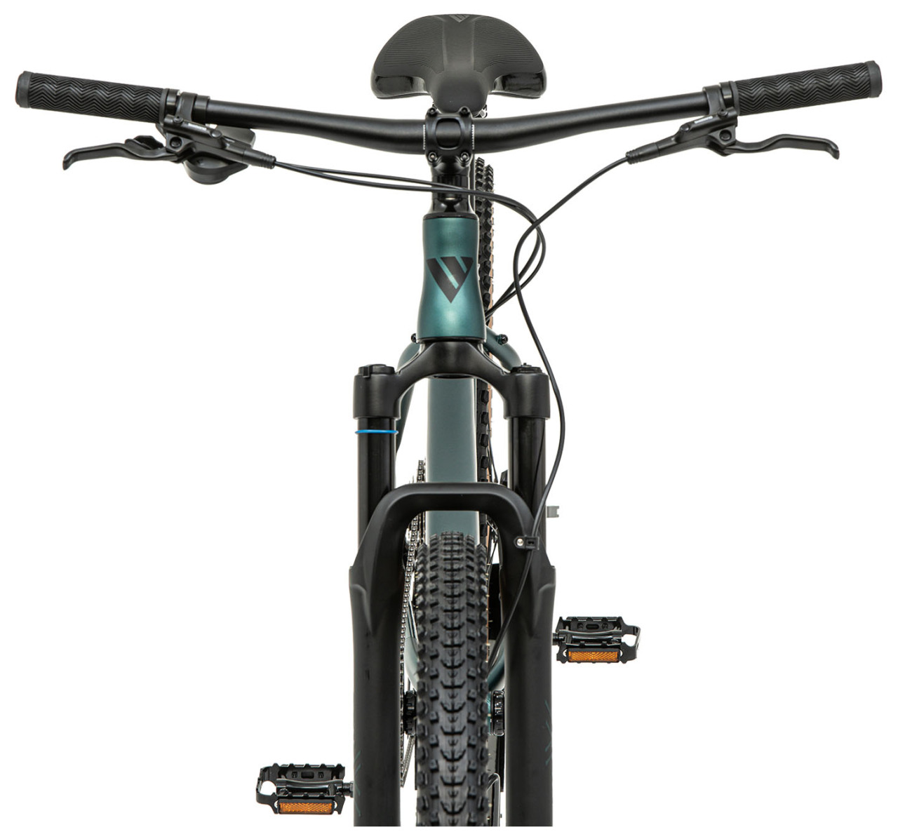 Из приятных мелочей, которые не всегда замечают в спецификации, но они реально влияют на ощущения: широкий руль 740 мм с лёгким backsweep, двухболтовый подседельный штырь, который удобнее точно выставить по углу, и Lock-on грипсы, которые не проворачиваются и не раздражают после пары жёстких поездок.