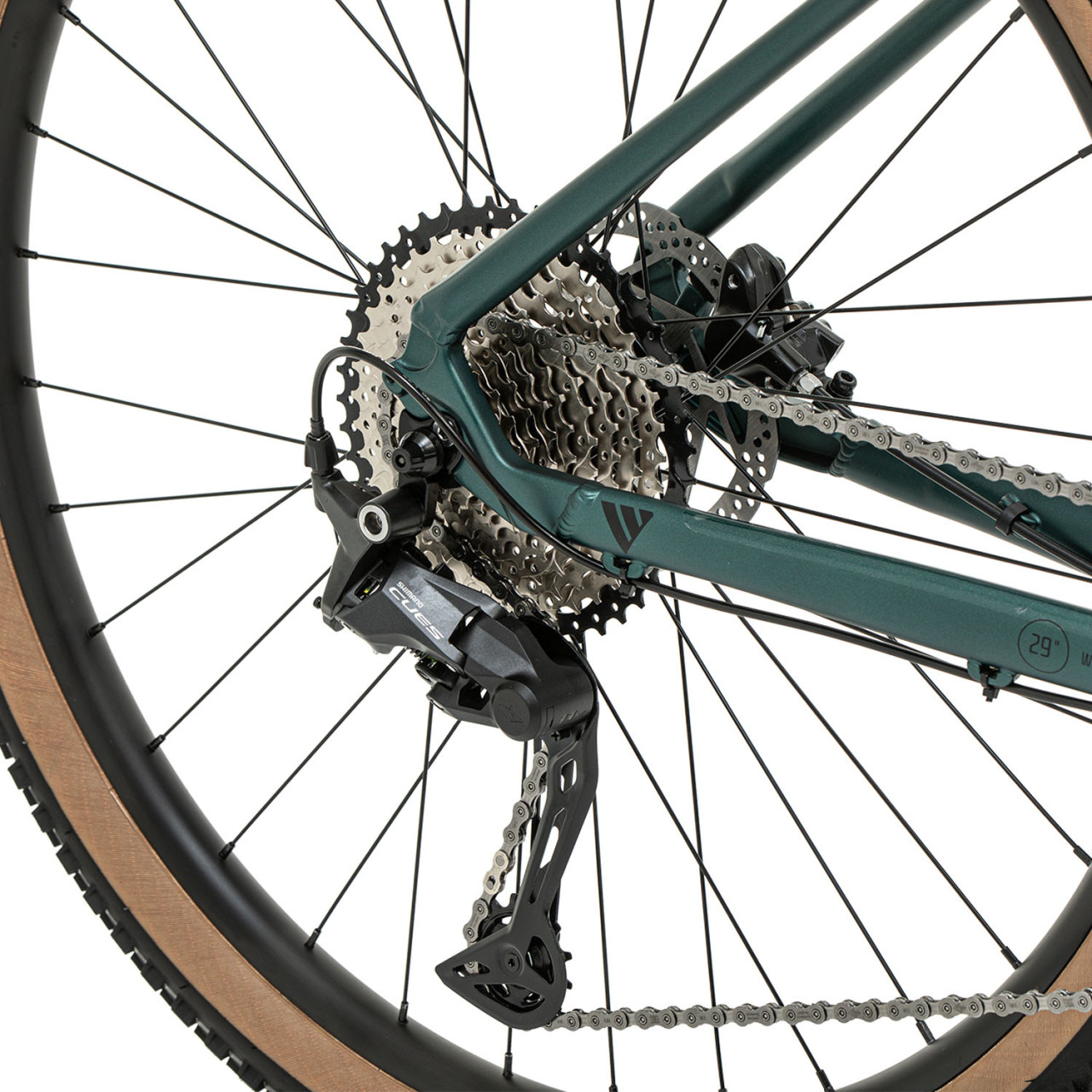 По трансмиссии здесь стоит очень удачная связка: Shimano CUES 1×11, задний переключатель RD-U6020, манетка SL-U6000, кассета 11–46T и система Senicx FM3 с полой осью, звезда 34T. На практике это даёт главное — широкий диапазон без лишней сложности. Можно спокойно ехать и в подъём, и по прямой держать хороший темп, не думая о переднем переключателе. Плюс CUES сейчас ценят не только за работу, но и за ресурс при регулярном катании.