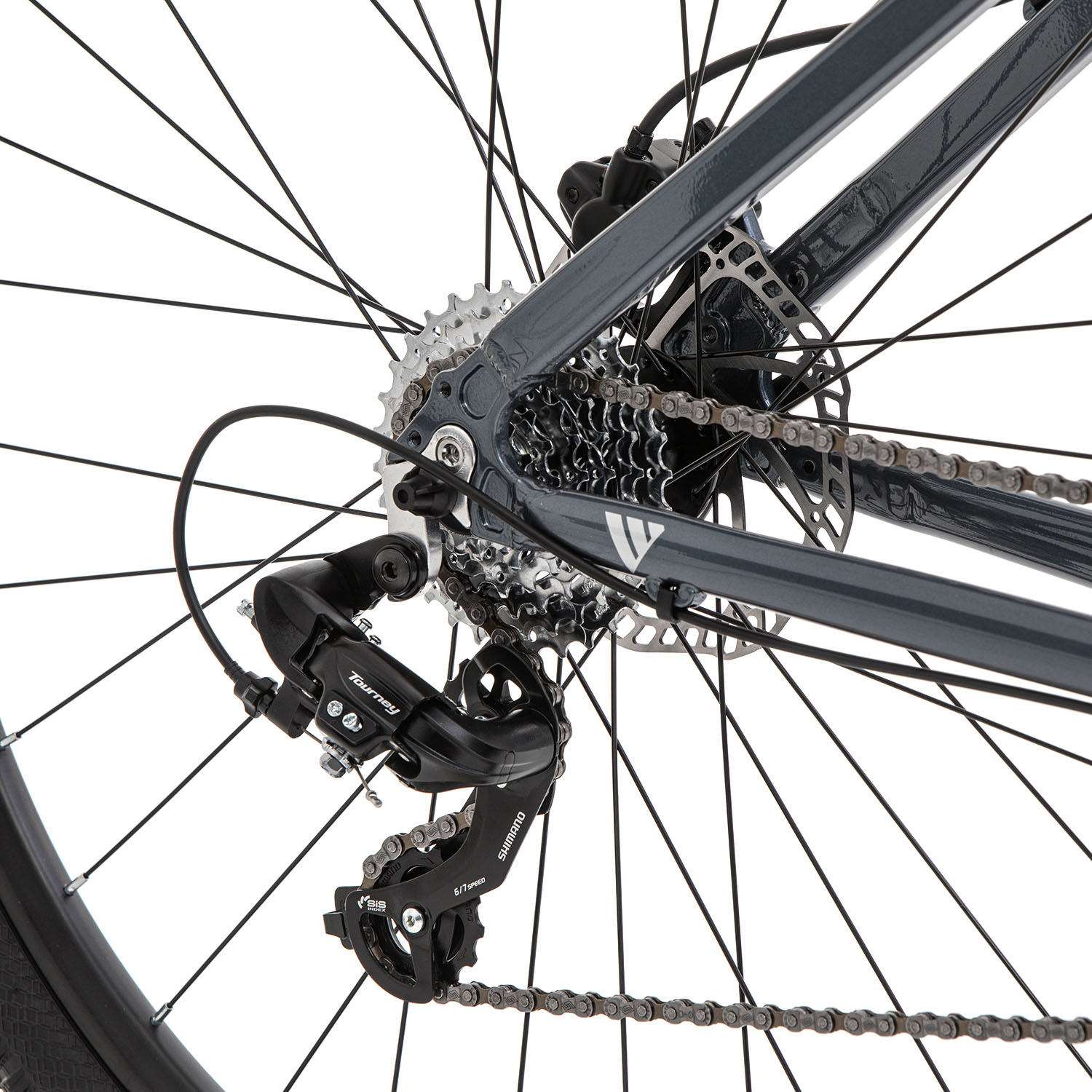 По подвеске — 100 мм хода на вилке с цельнолитыми алюминиевыми штанами: базово, но для повседневных маршрутов работает отлично. Самое приятное — гидравлические тормоза от Tektro: с ними проще контролировать скорость на спусках и в городе, особенно если катание не всегда в сухую погоду. Если нужен универсальный МТБ «на сезон и дальше», Storm 29 HD — один из самых здравых вариантов в начальном классе.