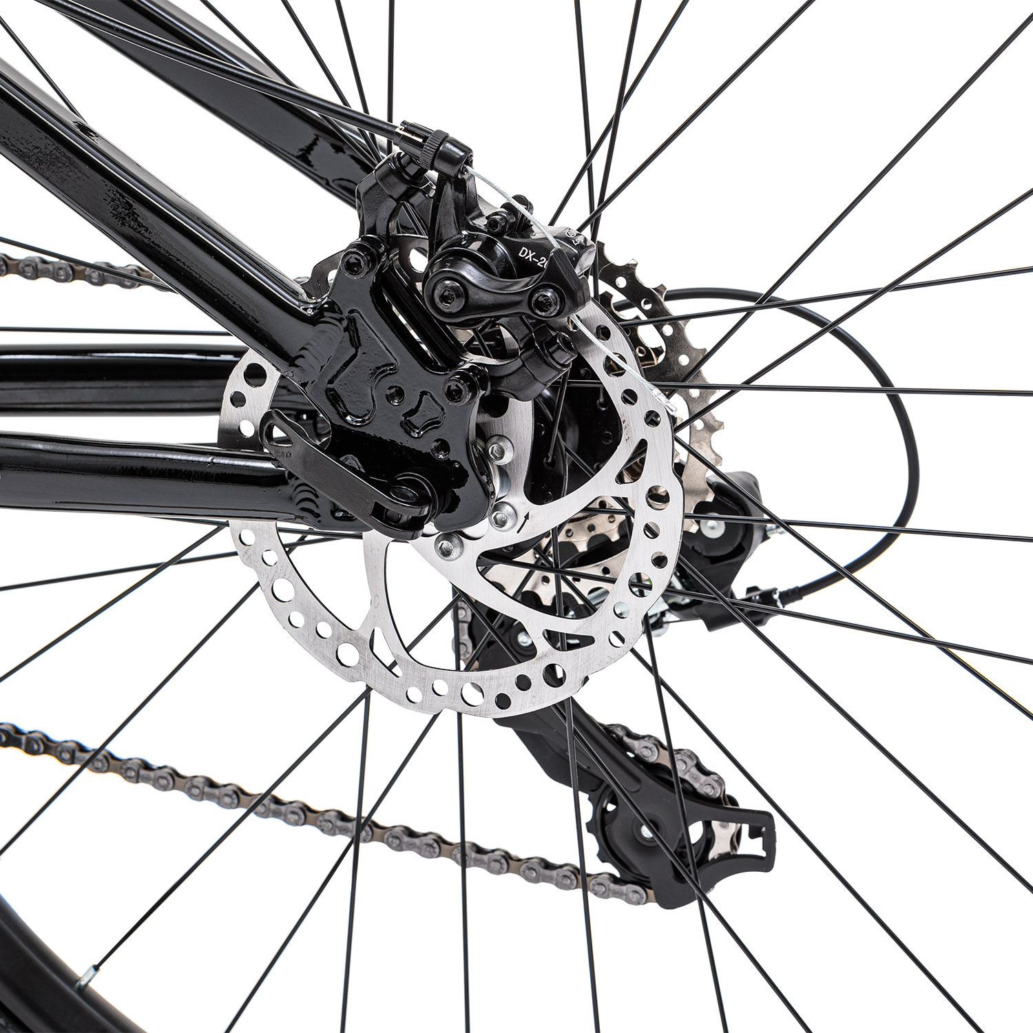 Тормоза — дисковые механические: простая и понятная система, которая уверенно тормозит в любую погоду и не требует сложного обслуживания. Такой велосипед хорош как «первый нормальный» — чтобы научиться кататься увереннее, ездить по паркам и лесным дорожкам, не думая каждую минуту о настройках и тонкостях.