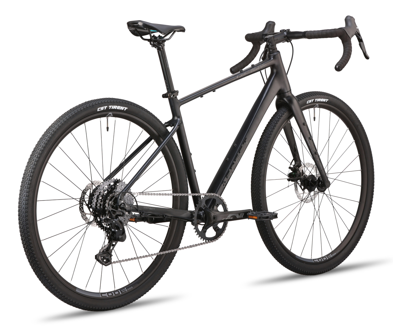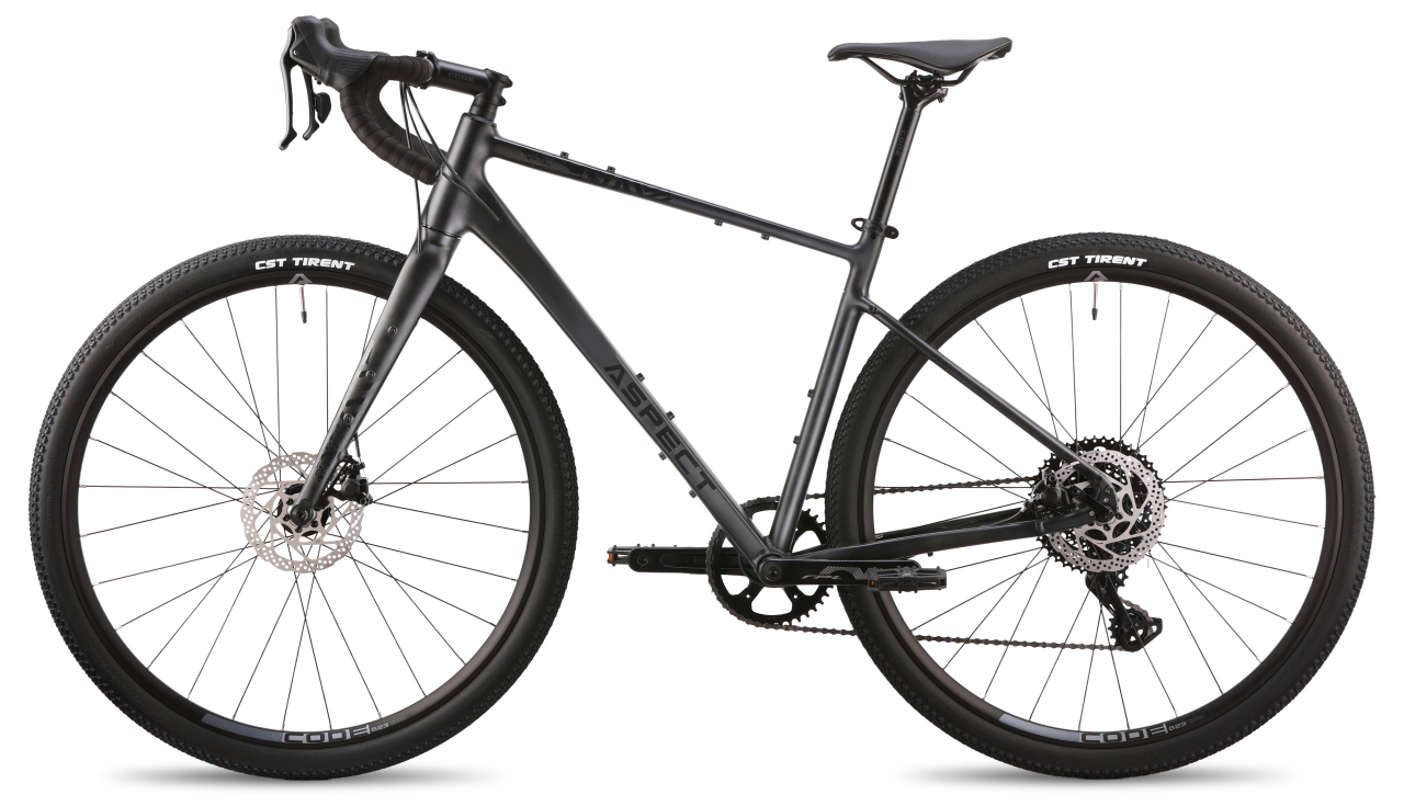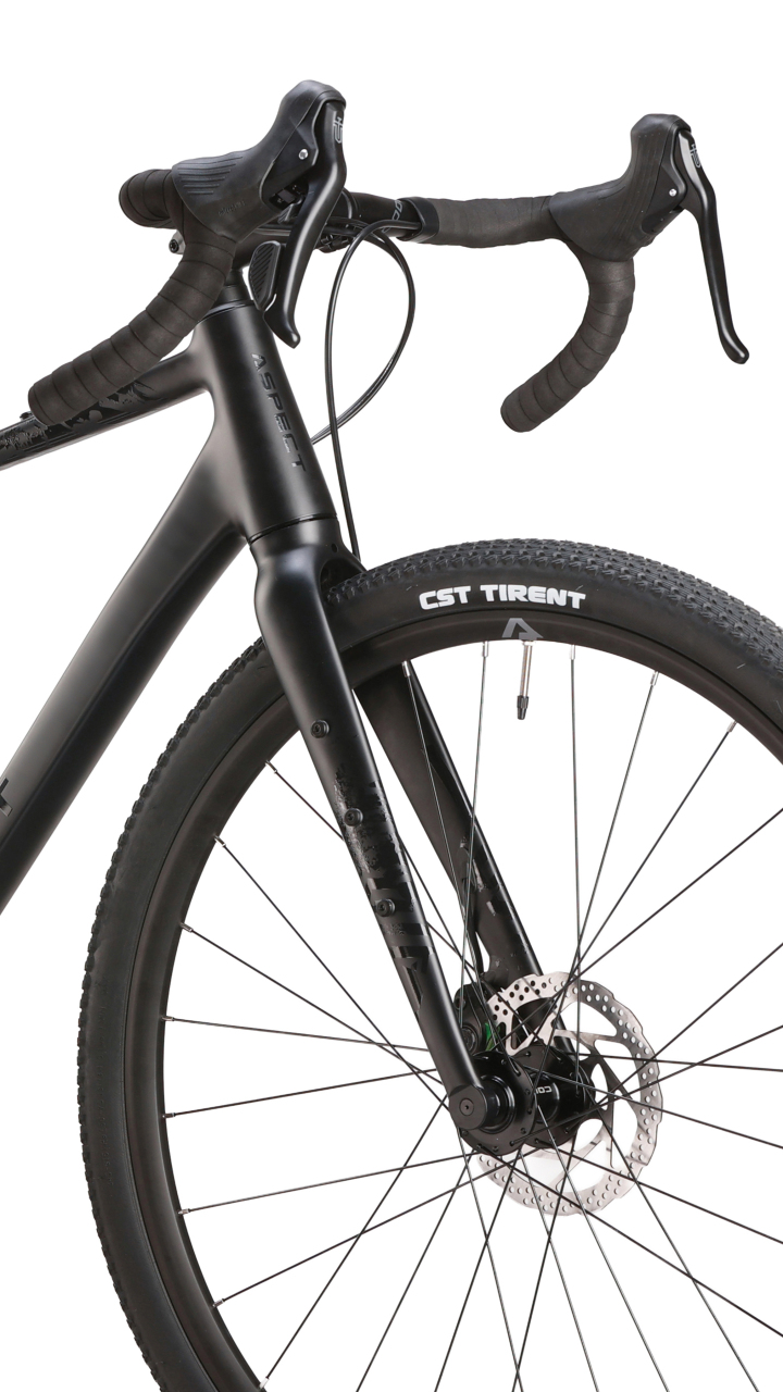 По раме и конструкции для своего класса он собран очень достойно. Здесь алюминий 6061 с гидроформингом, двойным баттингом, аккуратной обработкой швов, скрытой проводкой внутри передней части рамы и вилки, конусный рулевой стакан и крепления под аксессуары. Велосипед получил легкие колеса на двойных ободах с внутренней шириной 23 мм, втулки на промышленных подшипниках и покрышки CST Tirrent 700x42 с универсальным протектором. На практике это означает, что Aspect Chase 2026 не сводится только к асфальту: он спокойно чувствует себя на грубом городском покрытии, плотных грунтовках, проселках и обычных загородных маршрутах, где нужен не рекорд скорости, а понятный и живой универсал.