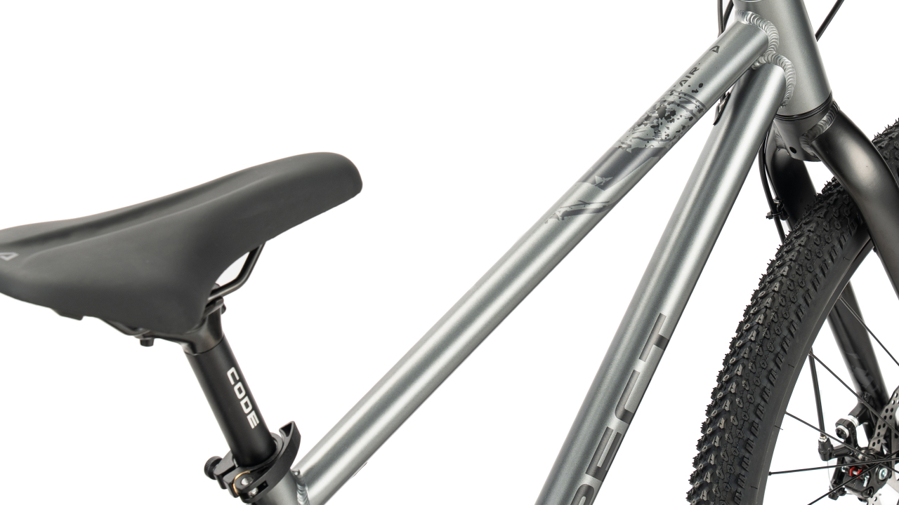 Рама здесь облегчена, выполнена из алюминия серии 6061, с внутренней проводкой, полуинтегрированной рулевой и геометрией, рассчитанной на подростковый рост. Главная особенность Air Lite 26 — жёсткая алюминиевая вилка. У подростковых велосипедов дешёвая амортизация часто даёт больше веса и ватности, чем реального комфорта. Здесь от неё отказались в пользу более лёгкого и честного поведения: велосипед лучше разгоняется, ощутимо легче рулится и не теряет энергию на раскачке. Для города, парка, школьного маршрута и активных прогулок такой подход часто оказывается приятнее, чем формальная пружинная вилка.