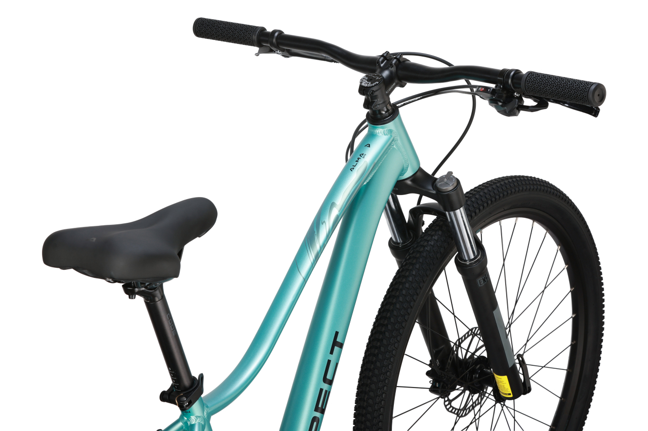 Одно из главных отличий версии Pro — трансмиссия. Здесь уже стоит 1×9 на Shimano CUES: задний переключатель RD-U3020, манетка SL-U4000, кассета 11–40T, спереди система PROWHEEL C10Y-NW с одной ведущей звездой 34T. Это заметный шаг вперёд по сравнению с более простой 8-скоростной конфигурацией младшей Alma. С практической точки зрения это даёт сразу несколько плюсов: диапазон шире, логика переключения чище, а сама система лучше воспринимается в повседневной езде и на длительной дистанции. Для женского MTB, который покупают не “на три выезда”, а для регулярных поездок по городу, парку и грунту, такая разница ощущается быстрее, чем кажется по сухой таблице. И в официальных ключевых особенностях производитель делает акцент именно на “современном горном хардтейле” с трансмиссией 1×9, гидравликой и 27.5-дюймовыми колёсами — то есть здесь уже есть ощущение не базовой прогулочной модели, а велосипеда с более внятным запасом по технике.