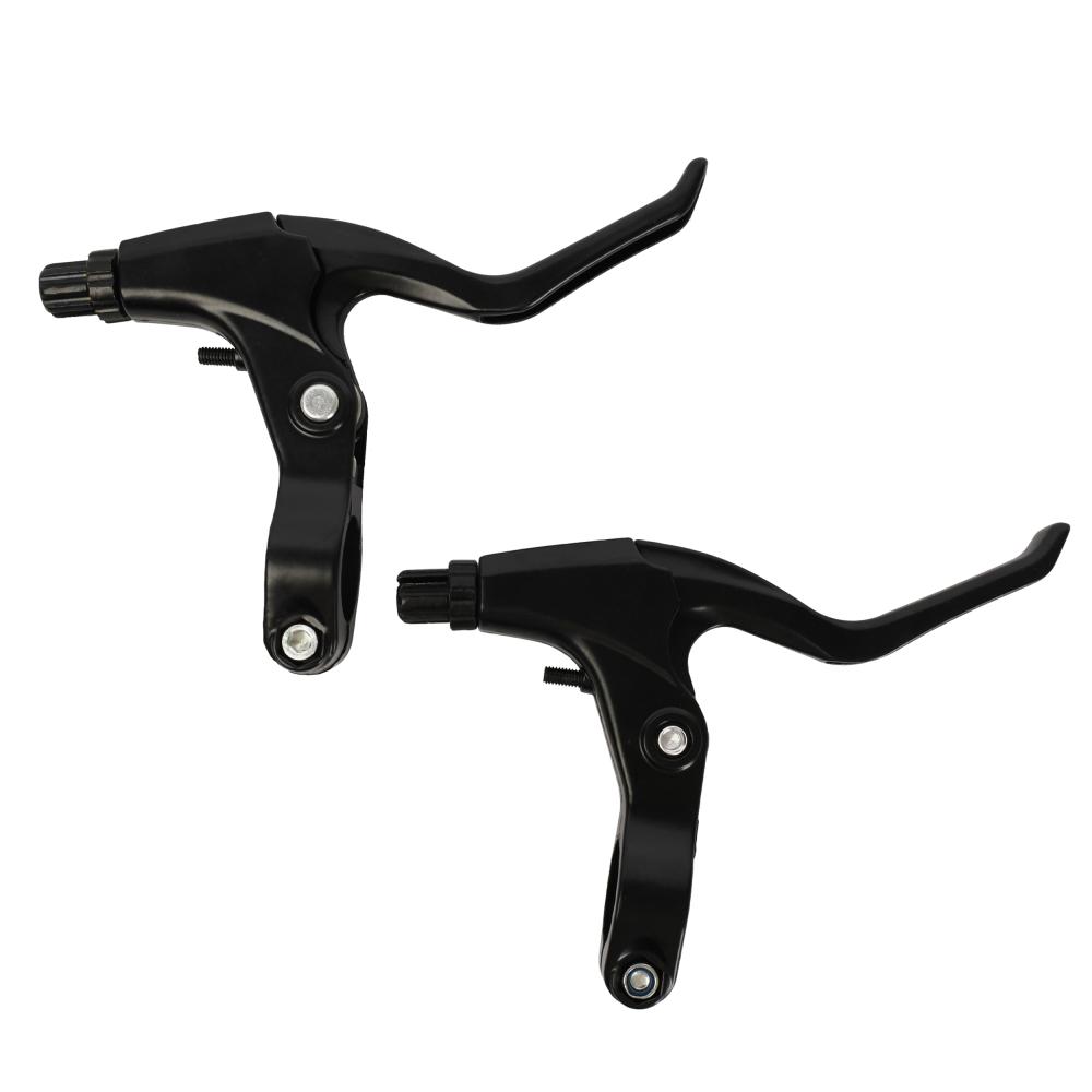 Комплект из двух алюминиевых тормозных ручек (левая и правая), выполненных в едином стиле с черным основанием и черной ручкой. Конструкция рассчитана на 3 пальца, что обеспечивает удобный хват и эффективное торможение с минимальными усилиями. Встроенная возвратная пружина гарантирует четкий ход и автоматическое возвращение ручки в исходное положение после отпускания. Прочный алюминиевый сплав обеспечивает легкость и надежность при интенсивной эксплуатации. Эргономичная форма и лаконичный дизайн делают эту пару отличным выбором для замены штатных ручек или апгрейда велосипеда. Без тормозных тросов в комплекте.